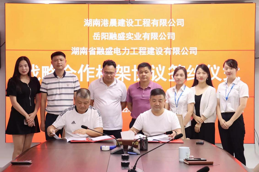 6月15日,湖南港晨建設工程有限公司與湖南省融盛電力工程建設有限公司、岳陽融盛實業有限公司簽署戰略合作框架協議。港晨公司黨支部書記、董事長王建偉,總經理李琦,副總經理兼總工程師嚴偉,岳陽融盛實業有限公司董事長陳志剛,副總經理李波濤參加簽約儀式。