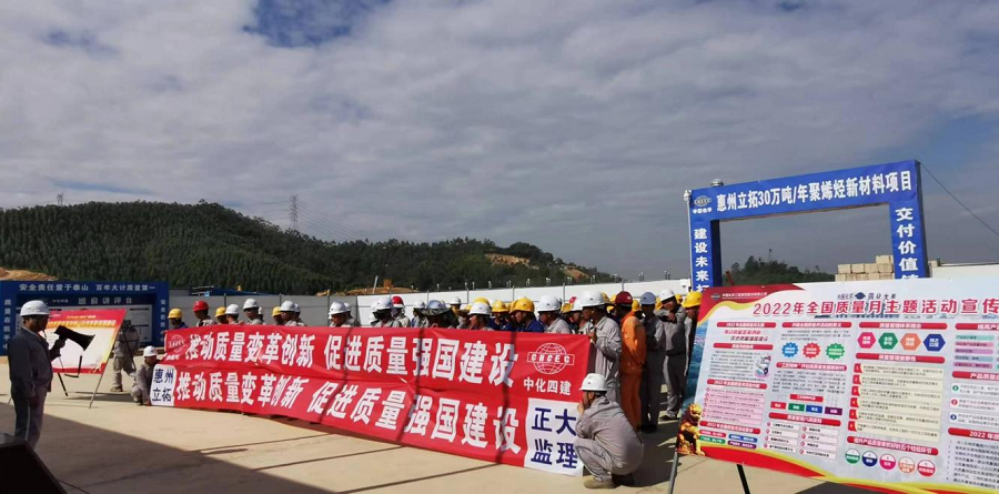 日前,華南公司惠州立拓項目開展以“推動質(zhì)量變革創(chuàng)新、促進質(zhì)量強國建設(shè)”為主題的2022年“質(zhì)量月”活動啟動儀式。