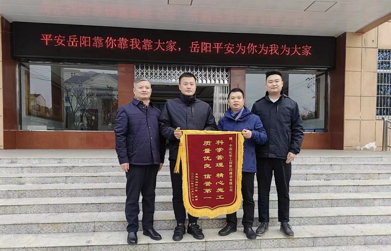 岳陽市政府機關事務管理中心、市朝陽小學到岳陽污水治理項目部贈送錦旗致謝函