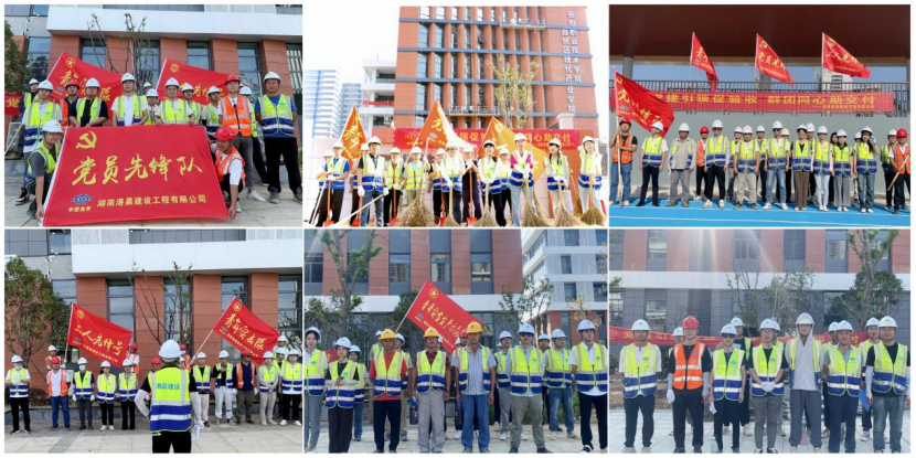活動圍繞項目D片區岳陽職業技術學院自貿區現代產業學院和岳陽市物流工程職業學校的秋季開學目標,港晨公司黨支部組建黨員先鋒隊、青年突擊隊和工人先鋒號,組織100名黨團職工進行現場大清掃與材料整理工作。