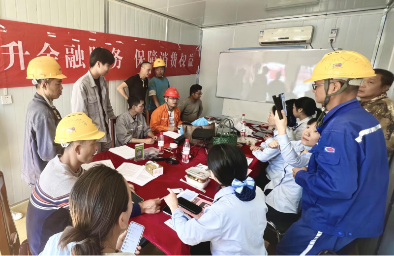 在辦理工資卡過程中,中南公司云溪管廊項目部秉持“我為群眾辦實事”宗旨,全力組織配合銀行工作人員進行集中開卡業務,協助銀行逐一比對農民工身份信息,核對辦卡資料,確認人證合一。同時,銀行工作人員還耐心地為農民工講解如何使用電子銀行,普及相關金融知識,引導農民工樹立風險防范意識。經過一天努力,工作人員為項目部農民工全部開立了工資卡,并同步開通手機銀行,便于他們日常查詢工資到賬情況,圓滿完成開卡工作。