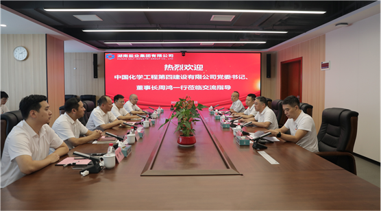8月20日下午,中國化學四公司黨委書記、董事長周鴻赴長沙拜訪湖南省輕工鹽業集團黨委書記、董事長馬天毅,雙方就進一步深化合作交流,實現互利共贏發展進行座談。