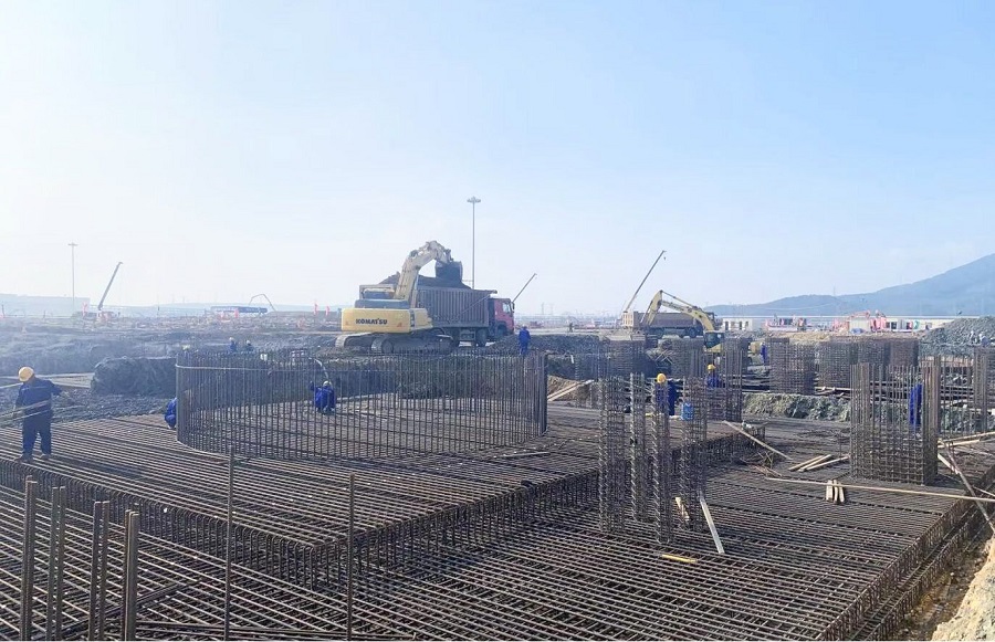 該裝置項目共有7個單元,自8月15日開工以來,項目部克服工期時間緊、地質巖石多、施工現場點多面廣、疫情防控等諸多困難,全力搶抓進度截至目前,初期雨水池池壁鋼筋已綁扎完成,氧化提濃單元核心設備基礎承臺澆筑完成,精餾單元各框架基礎陸續施工,異丙苯單元大面積開挖,裝置變電所基礎柱、梁混凝土澆筑完成。項目將充分利用好當前晴好天氣,合理組織班組施工作業,全力加快施工進度,確保完成各項既定任務為黨的二十大勝利召開獻禮。