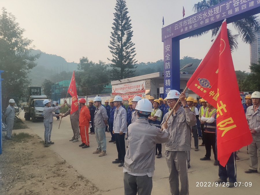 9 月 26日,華南公司粵海(云浮)城區污水項目部召開“百日會戰”動員部署會,并現場授旗,迅速掀起大干搶工熱潮。