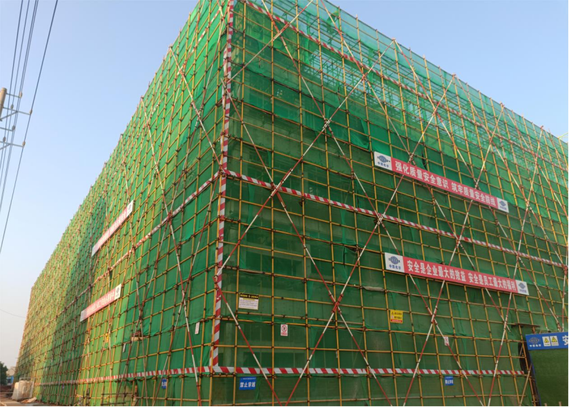 該項目總建筑面積1.67萬平方米,包括1棟多層廠房、1棟單層門衛(wèi)輔助用房。其中廠房標準層7.8米,地下室消防水池為深基坑,東側緊鄰高壓輸電線,主體結構與室外交叉作業(yè),施工場地狹小。自5月12日項目開工以來,面對梅雨季節(jié)和高溫酷暑,項目部以“開工即決戰(zhàn)”姿態(tài),奮力組織開展突擊大干,施工人員日夜奮戰(zhàn)、頑強拼搏,僅用90天就順利完成項目封頂。