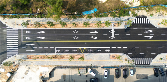 在道路修建過程中,項目團隊充分發揮專業優勢,嚴格遵循施工技術規范,精心選用優質的瀝青材料。為了提高攤鋪效率和碾壓密實度,項目團隊采用了兩臺攤鋪機聯鋪等科學有效的施工措施,嚴格控制瀝青混合料在施工過程中的溫度損失,有效提高瀝青混合料的熱穩定性和耐磨性。此外,項目團隊還加強了現場觀測,使瀝青面層的平整度和穩定性達到最佳狀態,確保了項目的順利竣工。