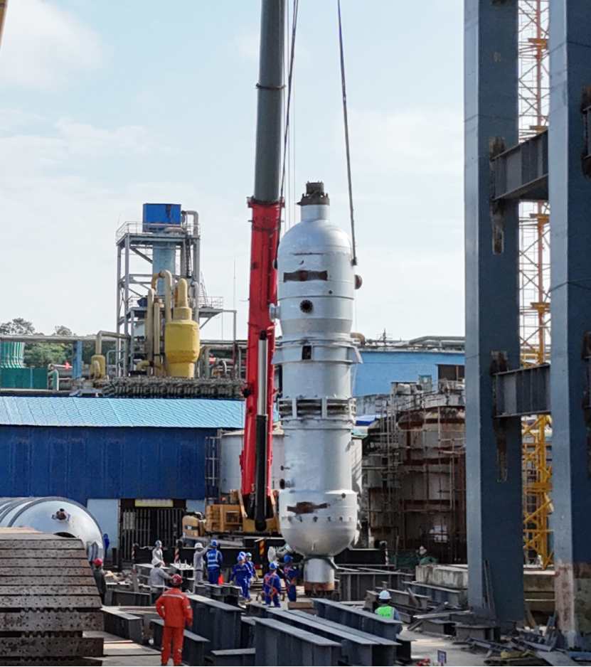 中南公司華強(qiáng)尿素項(xiàng)目汽提塔首吊成功