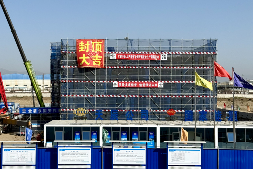 在順利完成第三換熱站主體封頂施工的基礎上,項目團隊乘勝追擊,精準銜接計劃節點,日夜奮戰,如期實現消防分站主體結構封頂目標,以扎實的履約能力贏得了業主的廣泛贊譽。