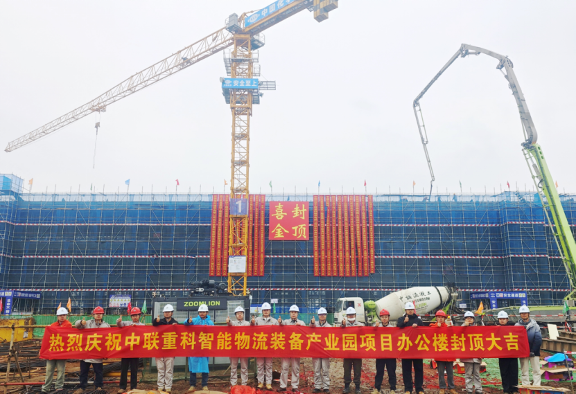 近日,由建筑工程公司承建的中聯重科智能物流裝備產業園項目辦公樓順利完成主體結構封頂。至此,該項目所有單位工程主體結構已全面封頂,標志著項目建設取得重要階段性進展。